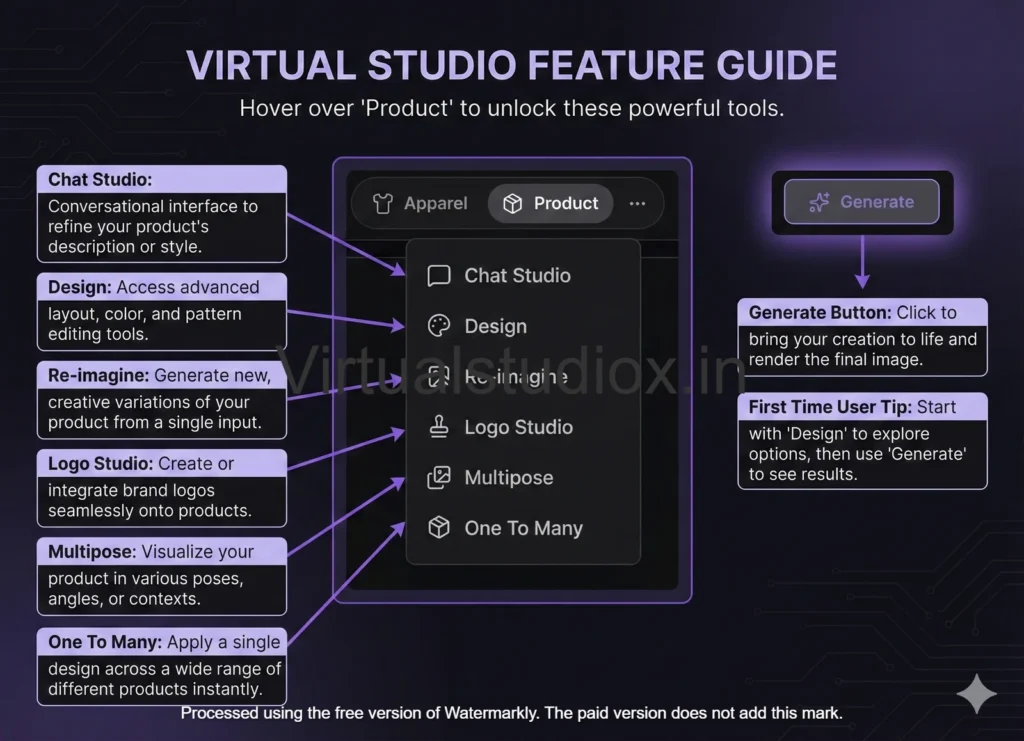 Stop spending ₹25,000–₹50,000 on every photoshoot and waiting a week for edits.With Virtual Studio AI, create stunning apparel, jewelry, and product visuals in seconds—no camera, no models, no editors.
